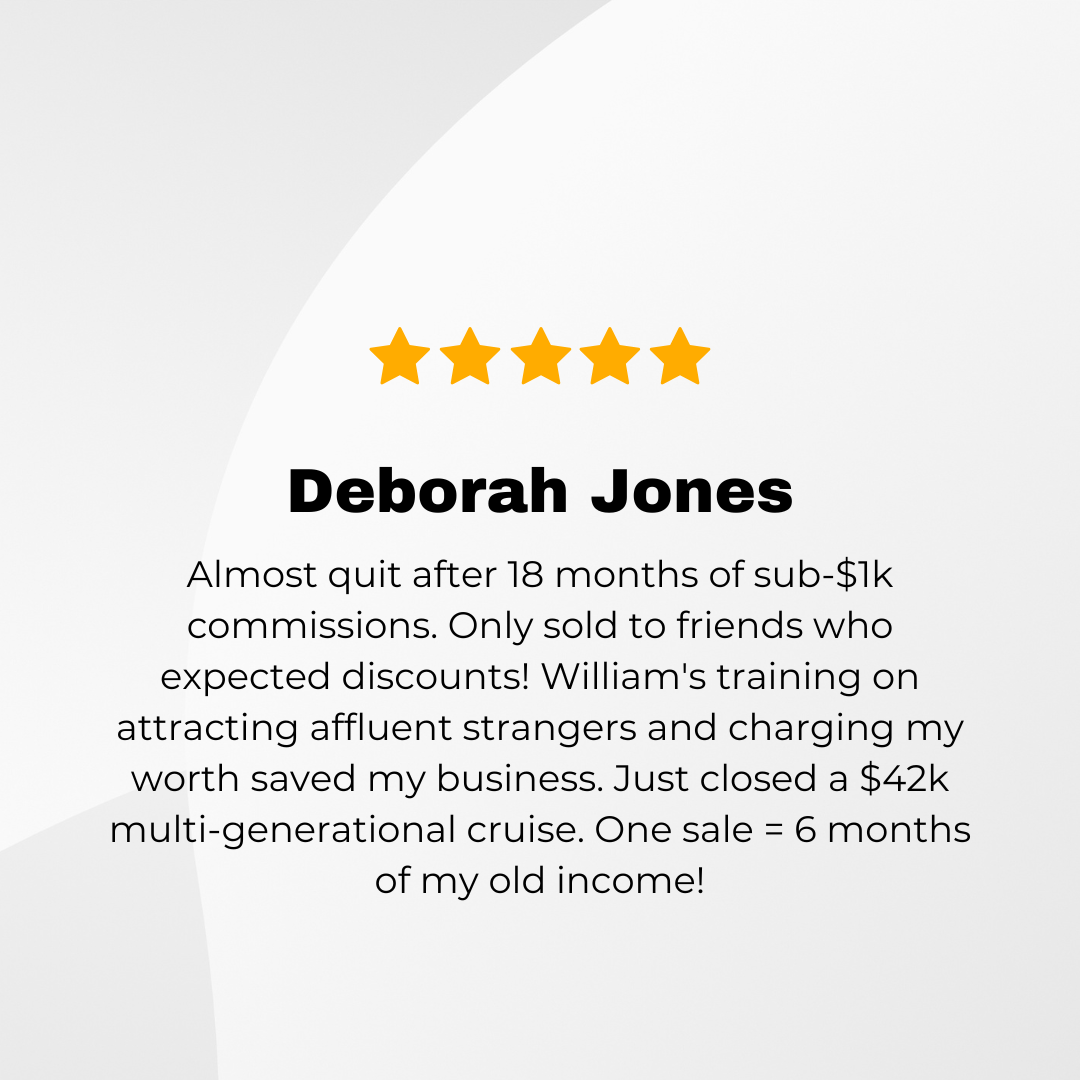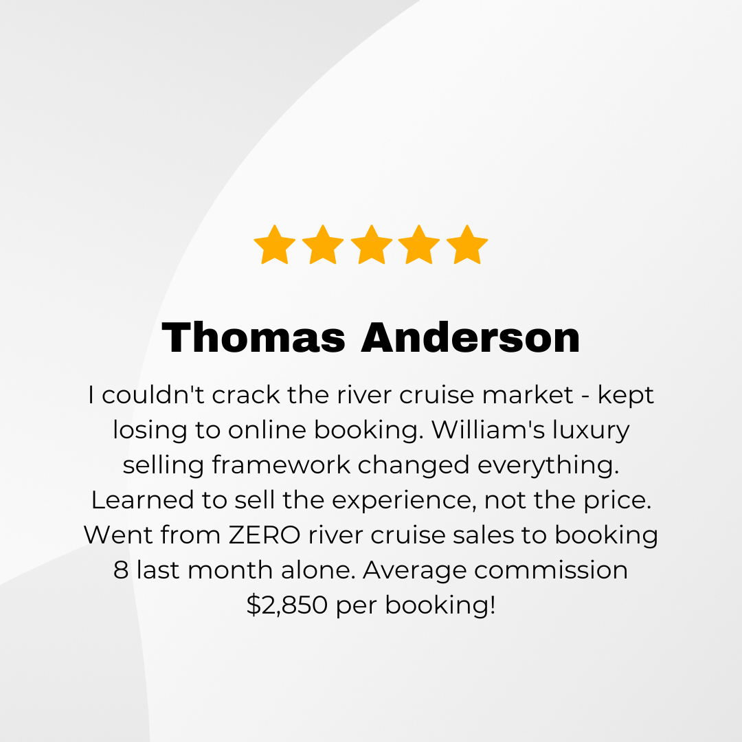 After proving this approach across cruises, river, luxury FIT, all-inclusive, honeymoons, groups, and more, we turned it into a plug-and-play system you can install in minutes, no meetings, no guesswork, just more yes and more commission from the calls you already take.