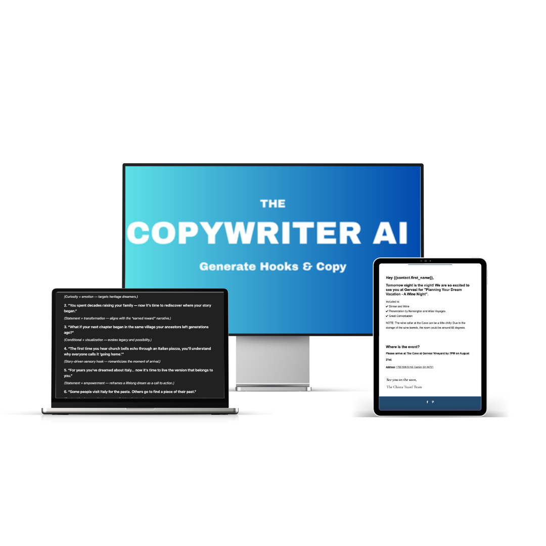 This is a MUST have GPT we designed for fast-moving travel advisors who want to rapidly come up with winning copy for their marketing campaigns.