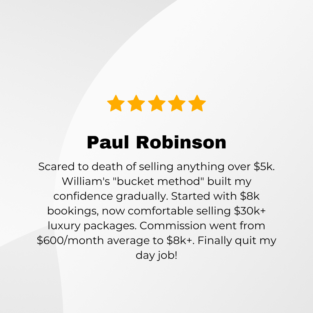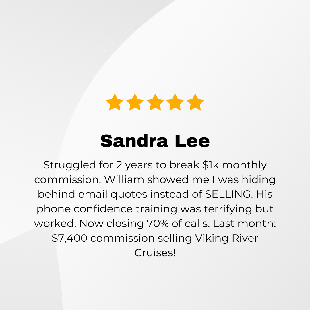 Travel Sales Accelerator is the fastest way to increase close rate and commission per call using your current sales process no extra meetings, no longer calls.
