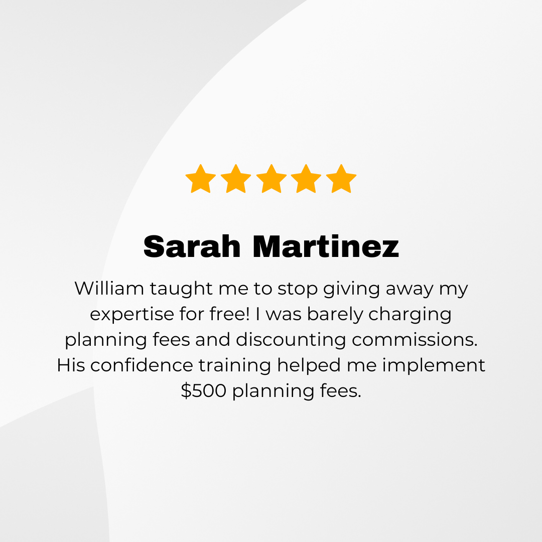 We give you the exact script our advisors use: pre-frame → 3 Buckets (value, not budget) → 90-second micro-design → confident fee ask.